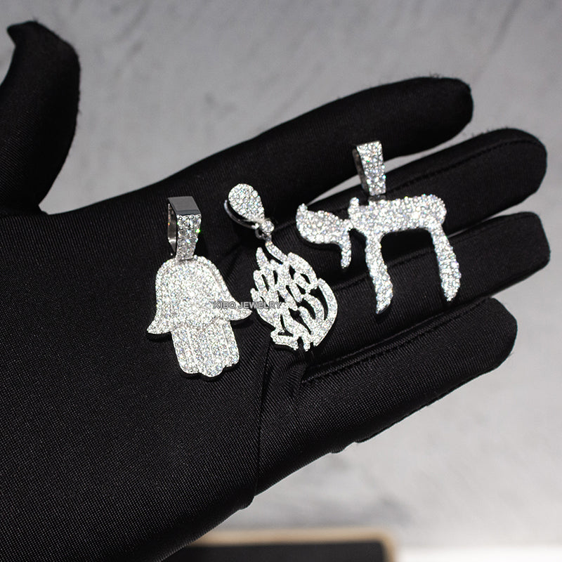 Elevate your hip hop aesthetic with this striking 925 sterling silver Cuban chain necklace featuring an iced-out Hamsa pendant. Crafted from premium sterling silver and adorned with brilliant moissanite stones, this piece delivers the coveted diamond-like sparkle without compromise. The Hamsa symbol, a timeless emblem of protection and spiritual significance, becomes a bold statement when encrusted with lab-created moissanite that rivals natural diamonds in brilliance and fire. The shiny Cuban link chain provides authentic street credibility while the iced-out pendant catches light from every angle. Perfect for collectors who demand both quality craftsmanship and undeniable visual impact. An investment piece that commands attention.